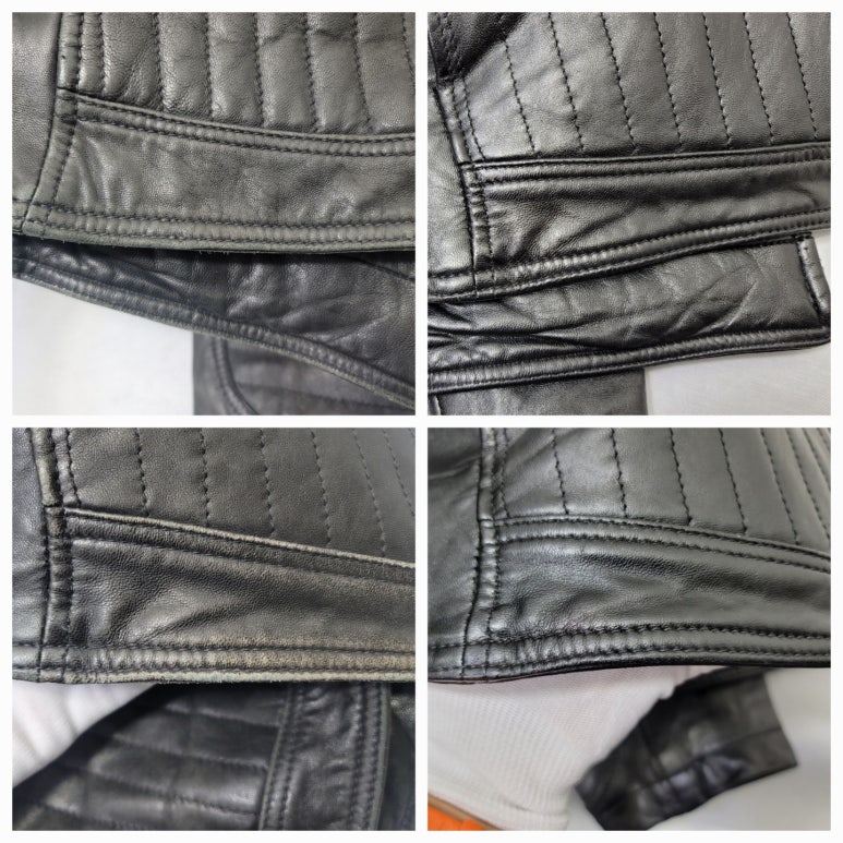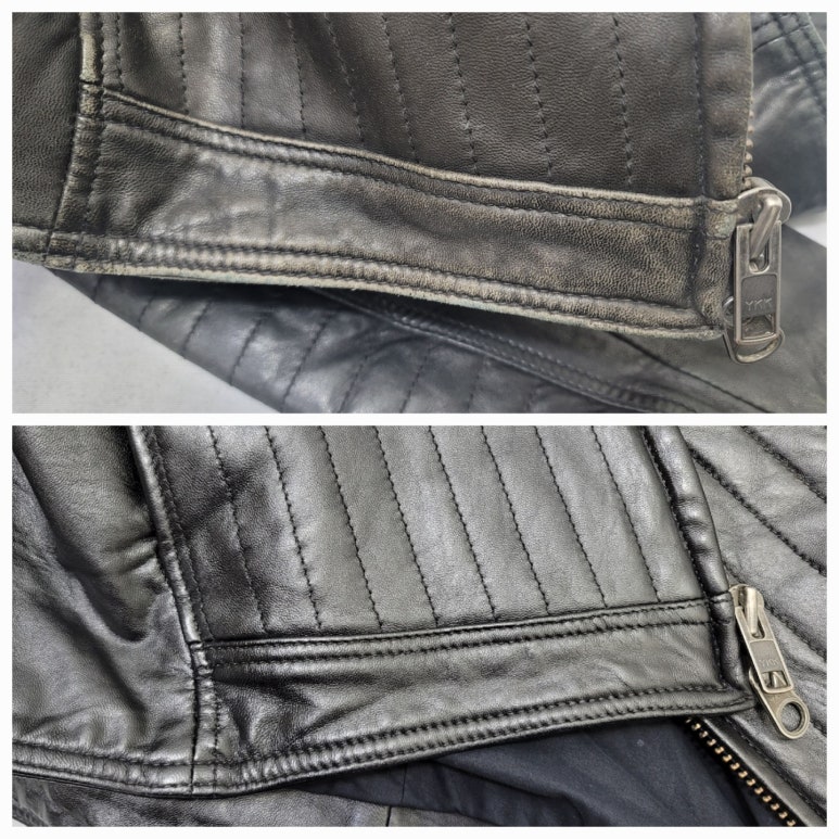 소매 끝단과 주머니 쪽 가죽복원 및 염색