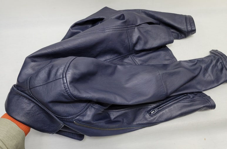 가죽자켓 염색 전문, 네이비 알마니 자켓 원색 살려 염색해드렸어요