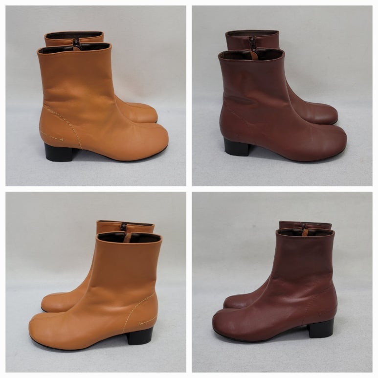 가죽 앵클부츠 염색 전/후 옆모습
