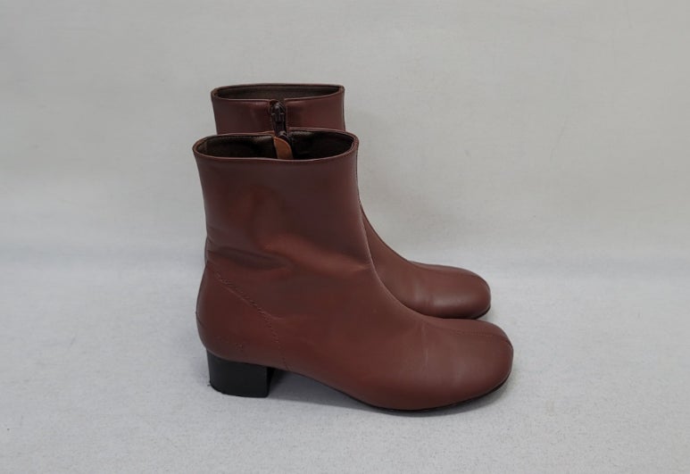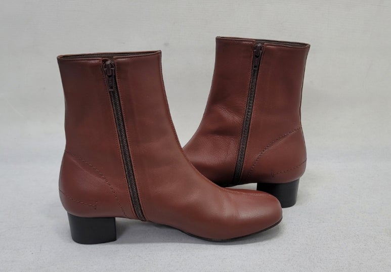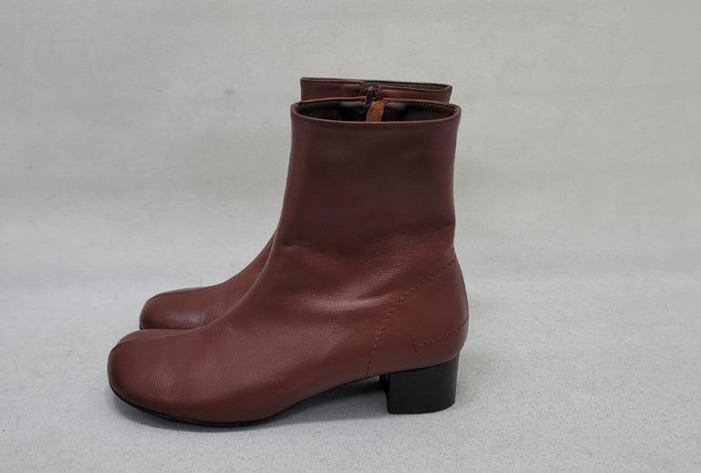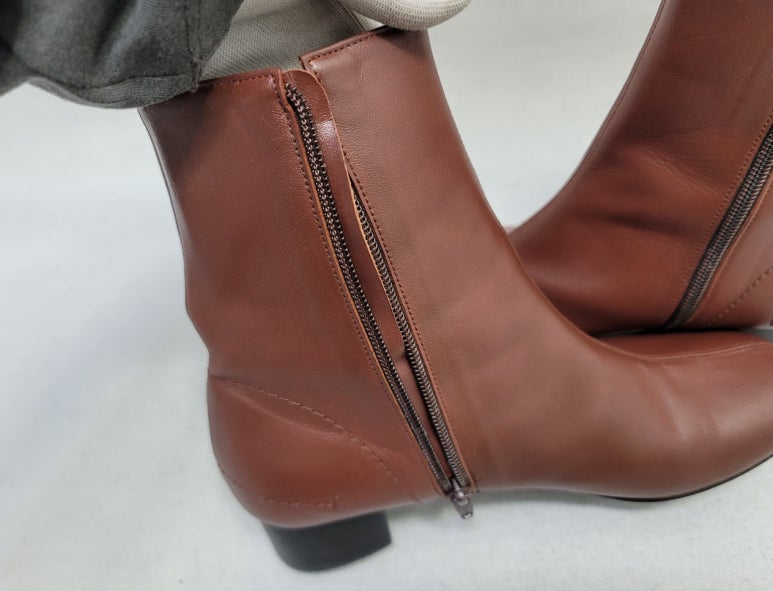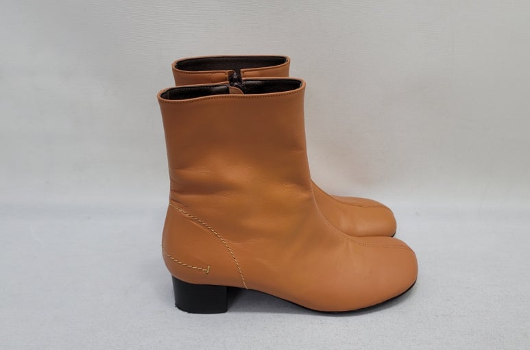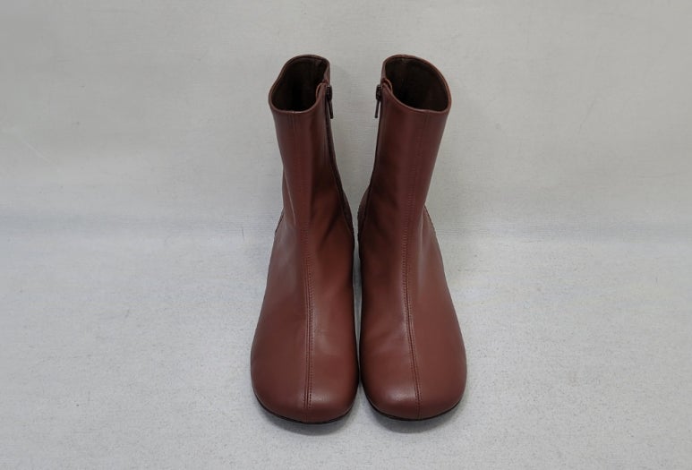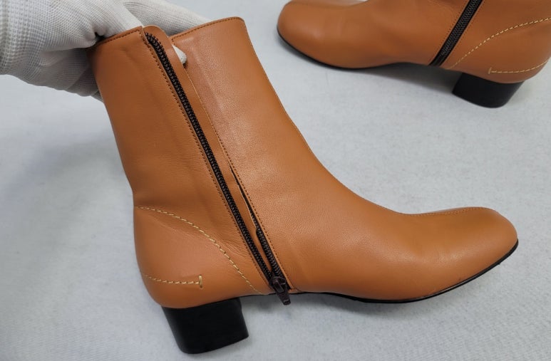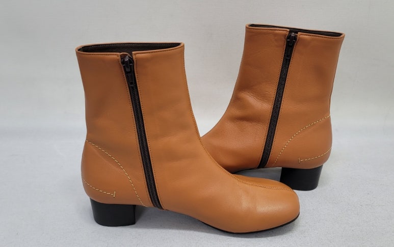 톤으로 염색을 마친 가죽 앵클부츠입니다.