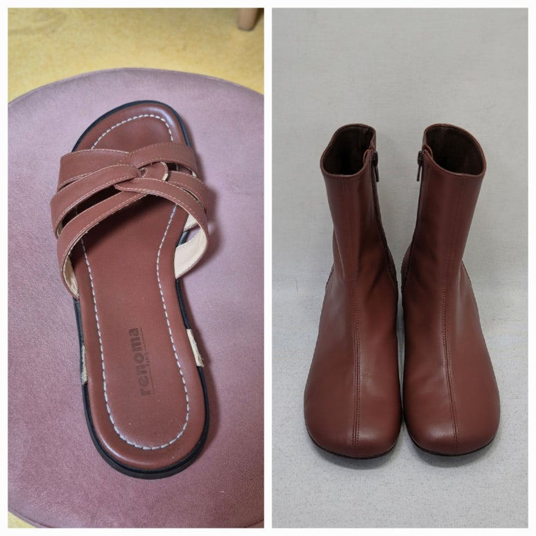 밝은 브라운 색상의 앵클부츠 염색을