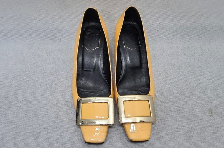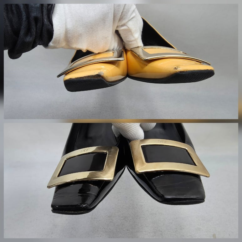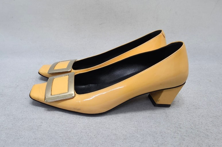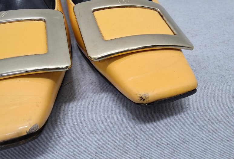 노란색 로저비비에 에나멜 구두를 블랙으로