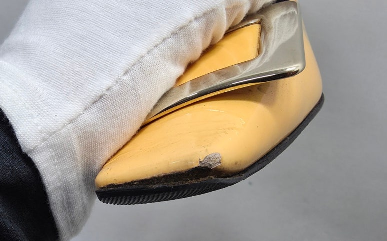 로저비비에 에나멜 구두 염색 : 앞코 에나멜 층 손상, 부분 이염과 변색