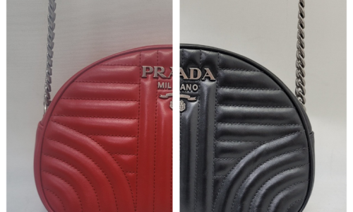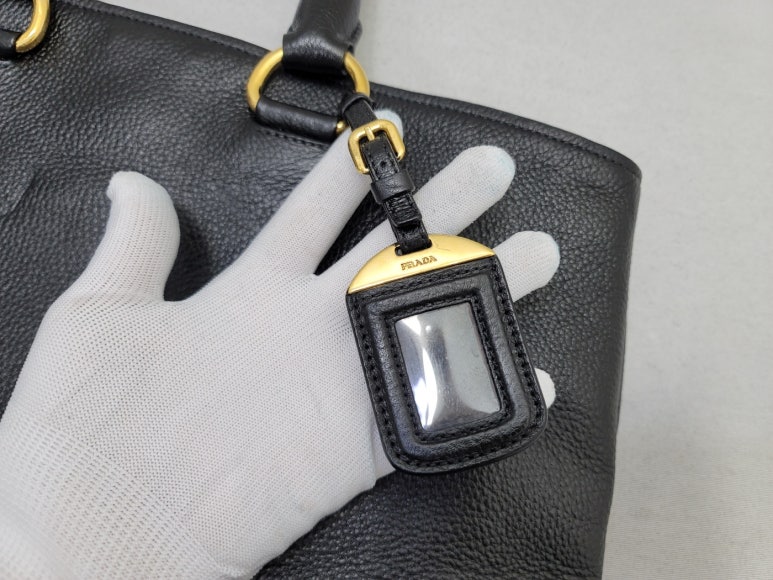 블랙으로 전체염색을 마친 프라다 숄더백입니다.