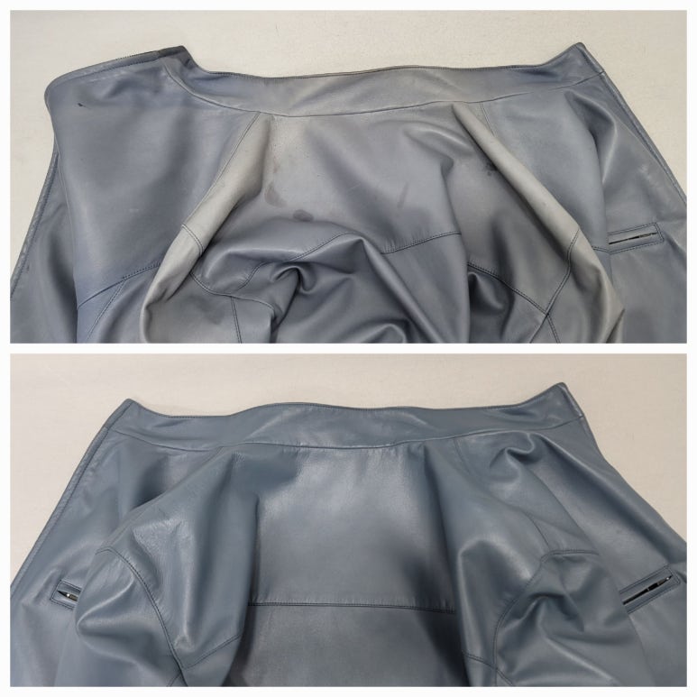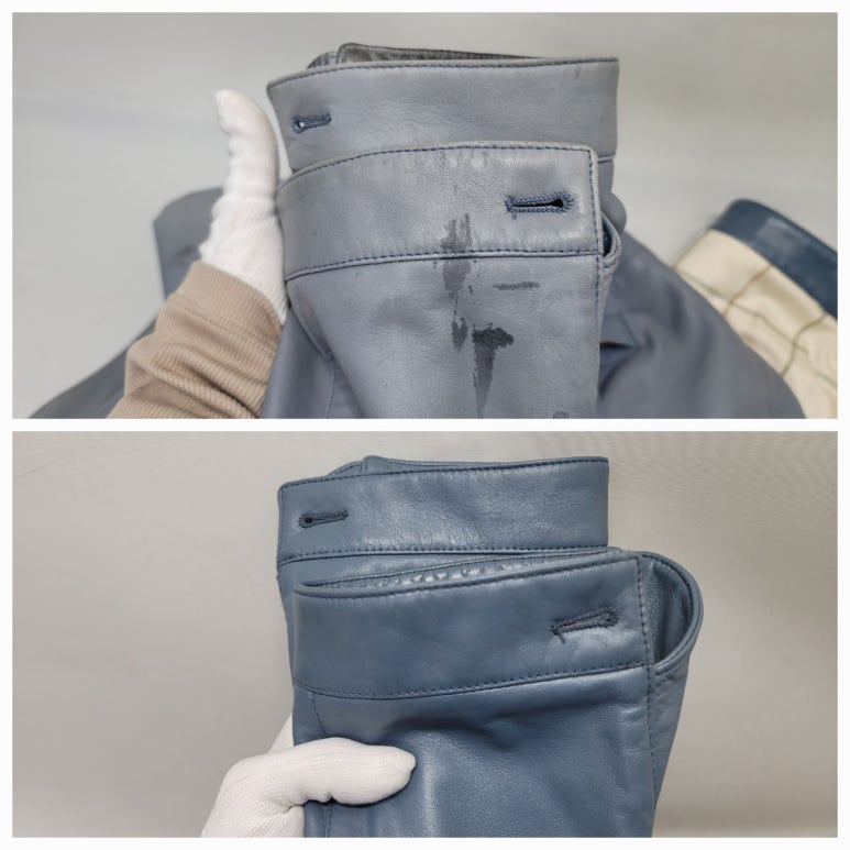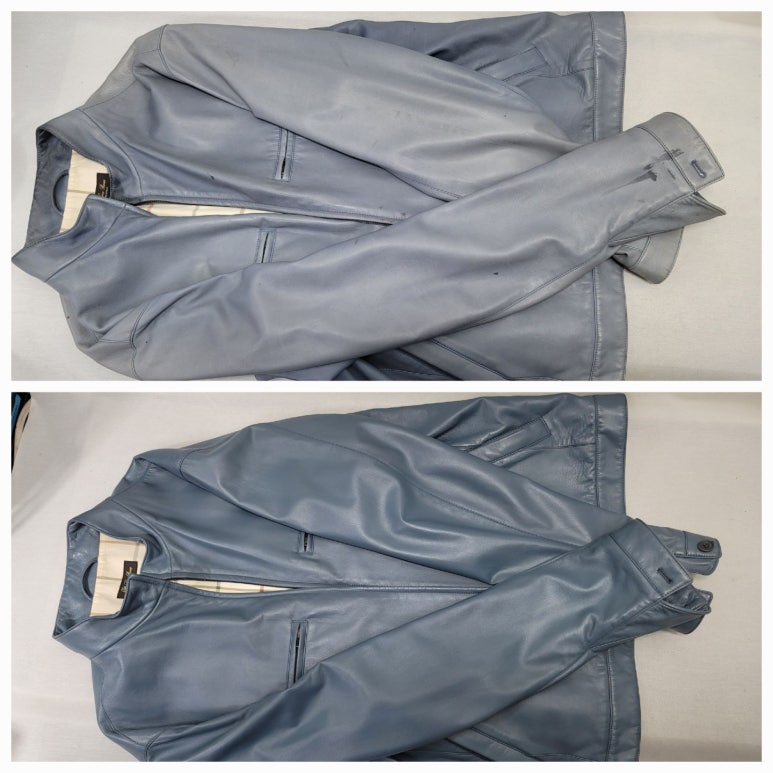 명품 가죽자켓 염색 과정을 가져왔습니다.