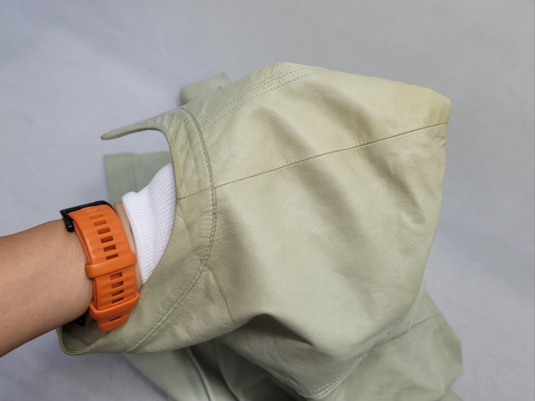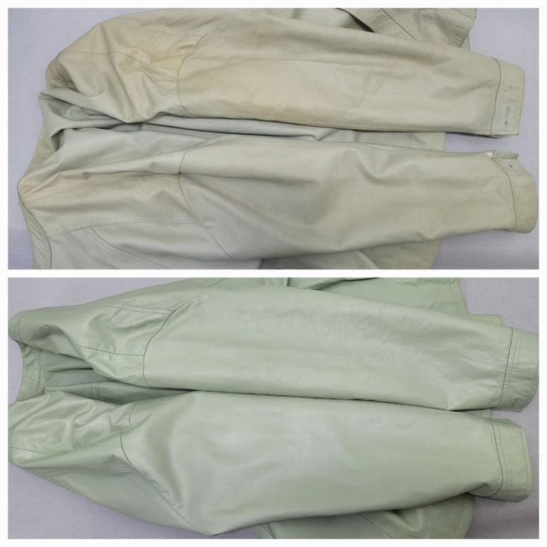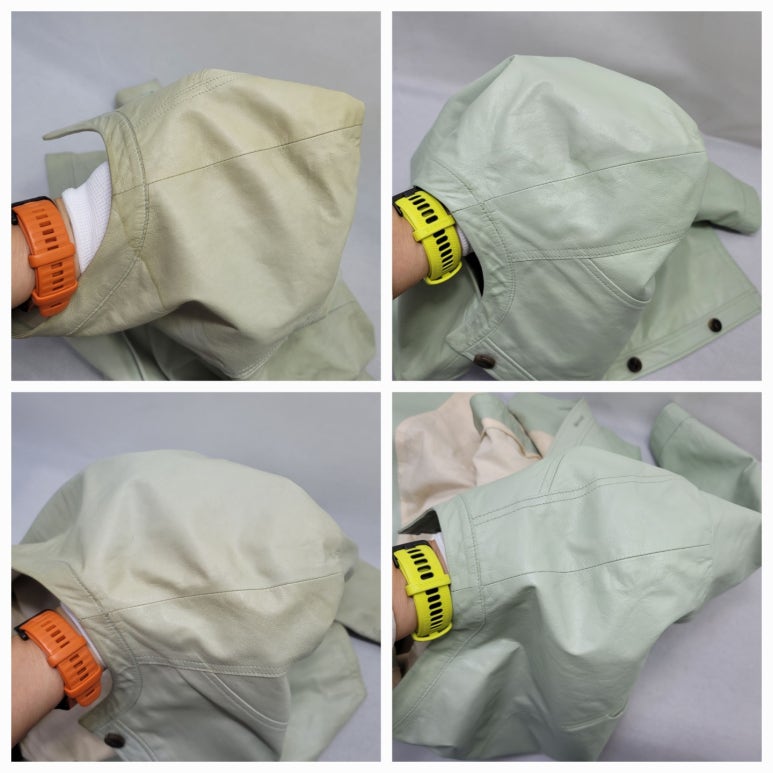 원래 색상으로 가죽자켓 염색하는 작업입니다.