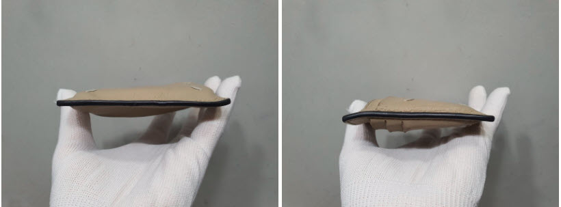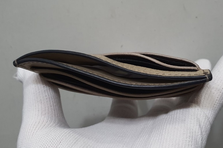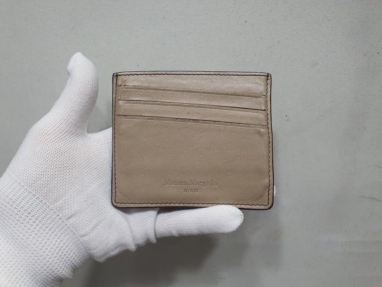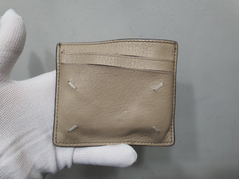 마르지엘라 지갑은 카드수납칸을 가죽을 접어 접착하는 방식이 아닌 샤넬이나 루이비통 처럼 절단면을 대부분 그대로 안감과 접착하여 마감처리하고 있습니다.
