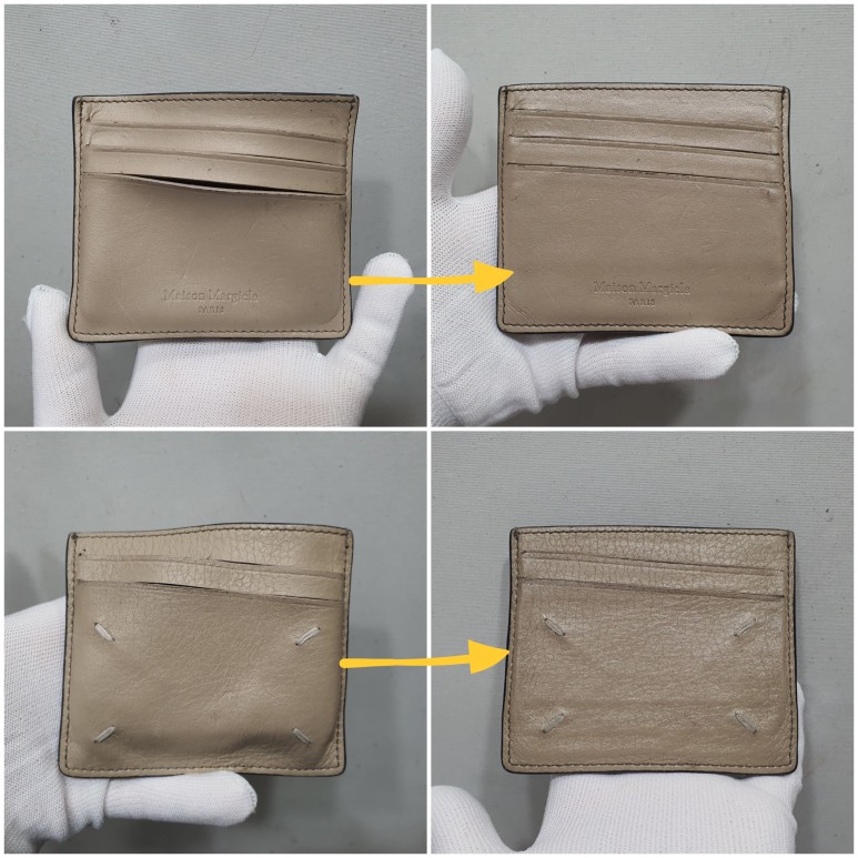 마르지엘라 가죽지갑은 절단면이 수분흡수를 더 빠르게 진행시키게 되므로 문제발생 시 빠른대처가 복원율을 더 높게 할 수 있습니다.