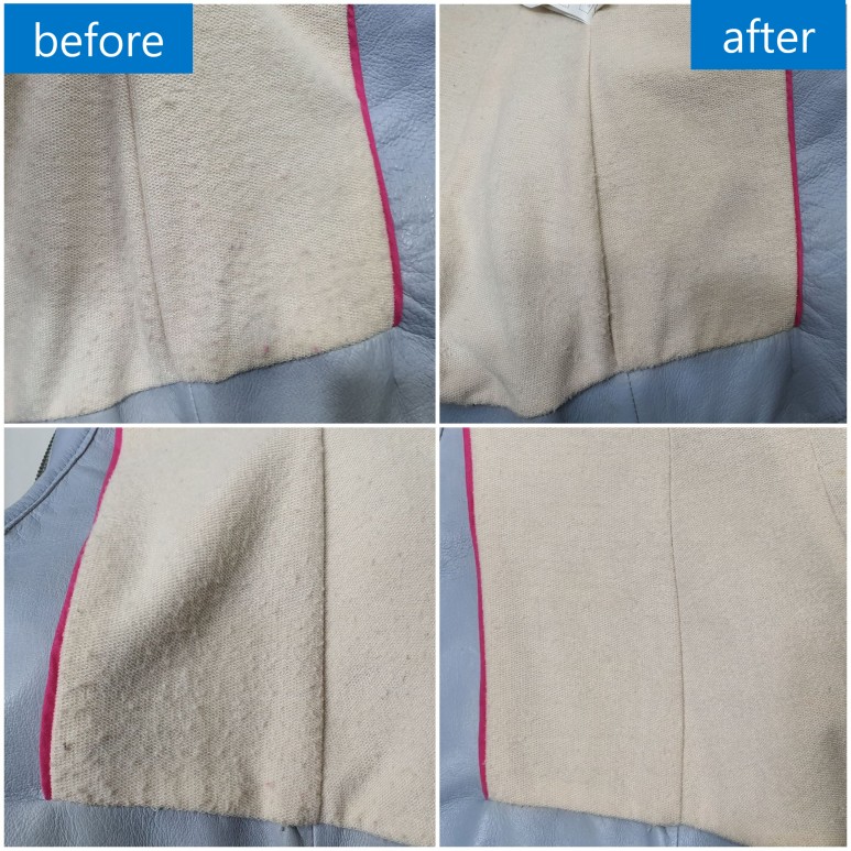 내부에 있을 문제도 꼼꼼히 살펴 봐야 겠네요. 이렇게 보풀이 일어나는 안감인 경우는 보풀제거도 말끔하게 해 주고요~ 오염이 있으면 제거하기도 하고요~ 냄새가 나는 부분은 탈취도~^^