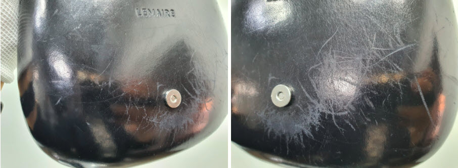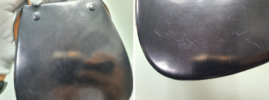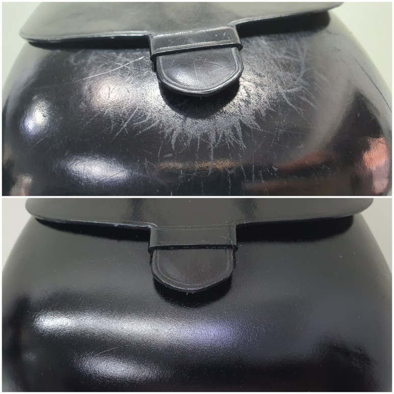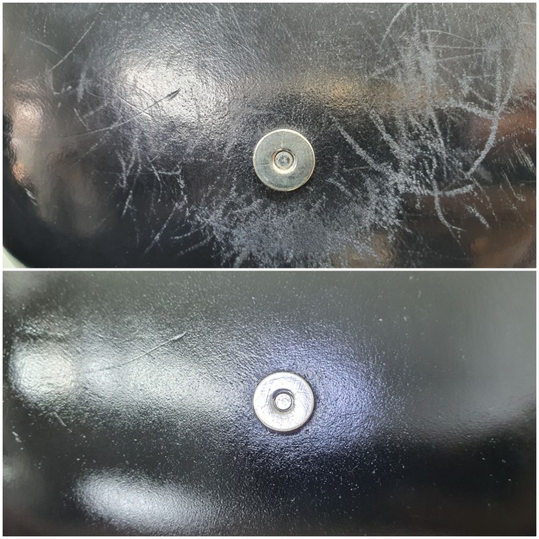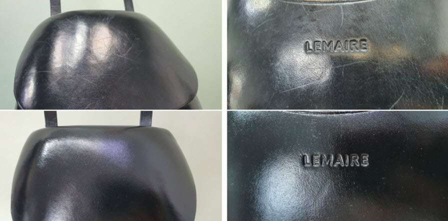 주름이나 패턴이 있는 가죽보다 더 까다로운 매끈한 표면의 고광택 르메르 핸드백, 온통 상처였던 르메르 카트리지백이 매끈하게 원래의 표면과 반짝이는 광택있는 모습을 되찾았네요^^