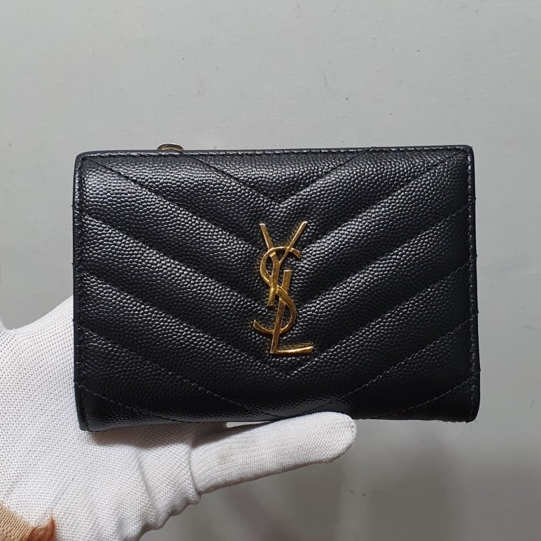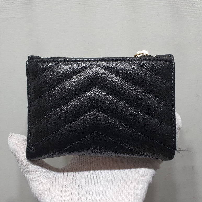 날렵하게 살아난 입생로랑 젖은 퀼팅 지갑의 위에서 본 라인입니다.