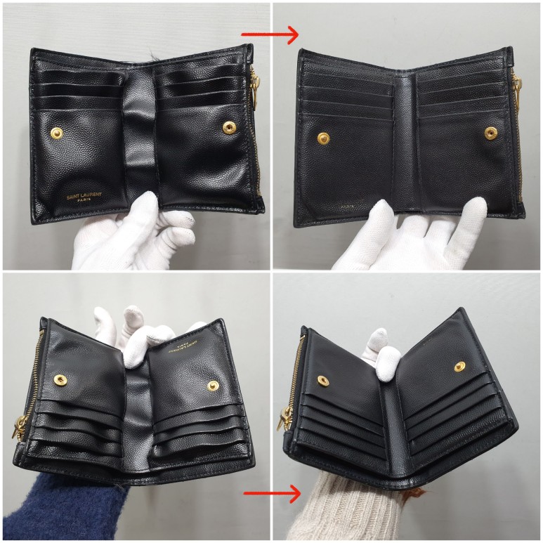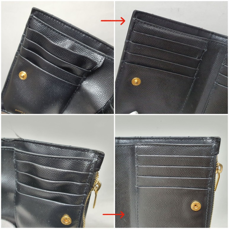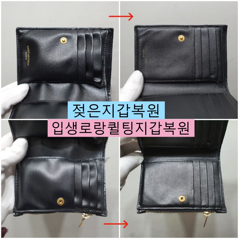 캐비어 가죽을 퀼팅한 입생로랑 젖은 지갑 복원 작업을 이렇게 분해하지 않고 깨끗하게 복원했습니다^^