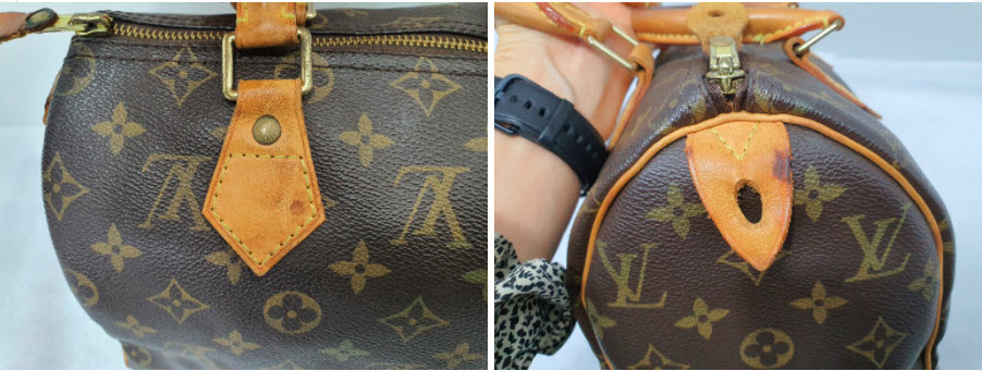 루이비통 스피디는 손잡이가 가장 심하게 오염되게 됩니다. 손이 자주, 직접 닿게 되어 땀과 화장품, 유분 등을 흡수하기 때문이지요. 검게 변한 부분이 명품가방세탁 작업을 통해 뽀얗고 예쁘게 되었습니다^^