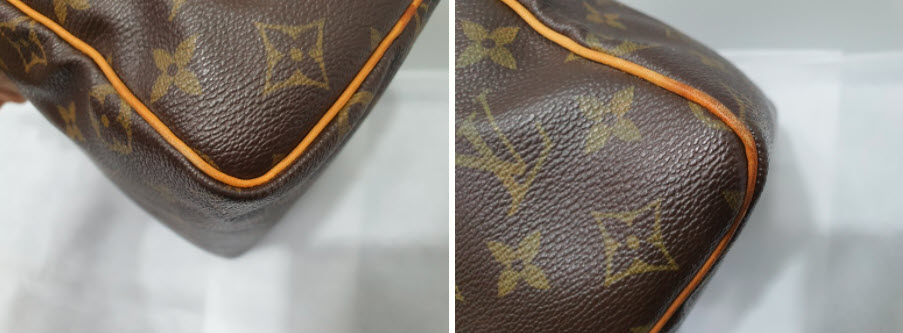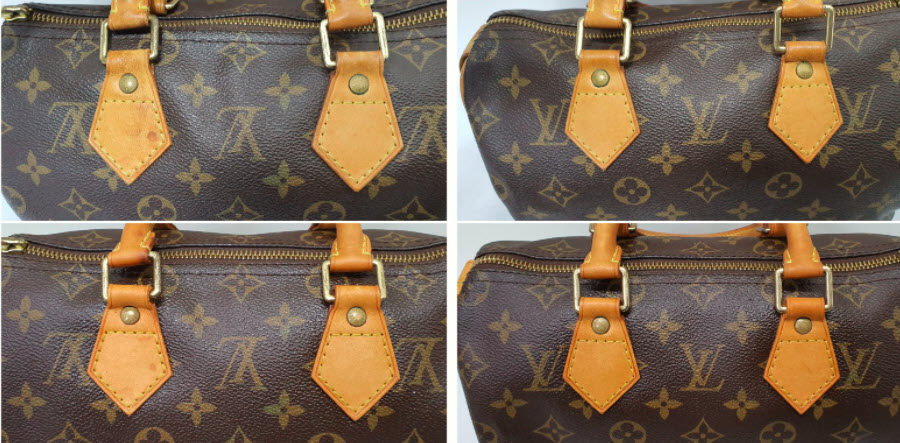 루이비통 가방은 PVC에 루이비통 특유의 로고나 패턴을 프린팅하여 가방제작 시에 사용하는데 대부분, 바디에 PVC를 사용하고 손잡이나 끈, 테두리 등을 카우하이드 가죽으로 매칭하여 가방을 제작합니다.