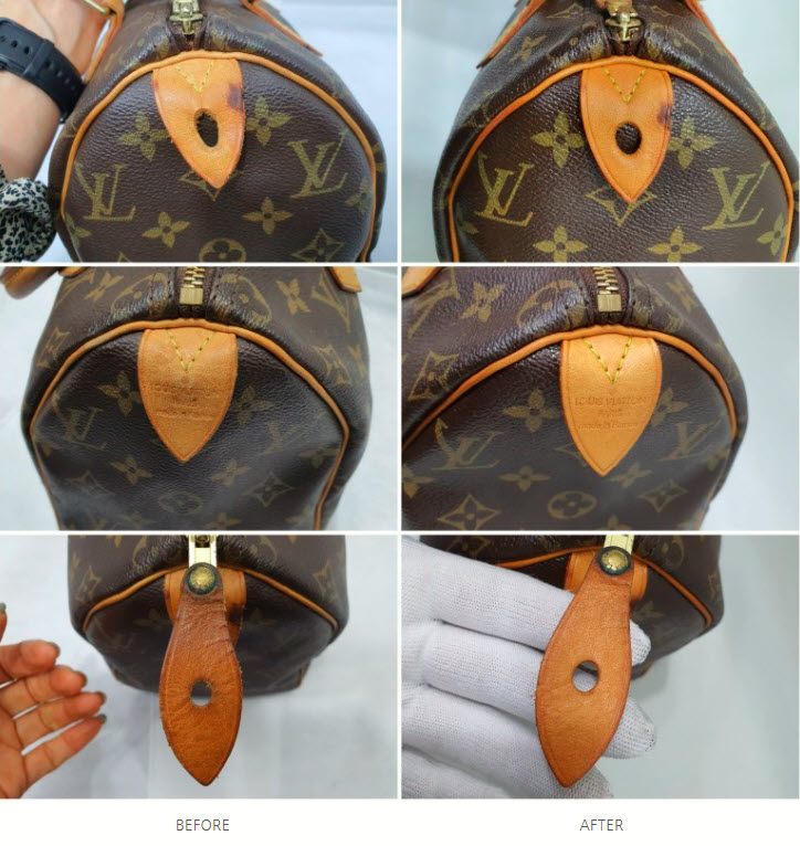 루이비통 가방은 카우하이드 가죽이 부분별로 색상이 달라지게 되는데, 클리닝을 하면 오염으로 탁해진 색상이 맑아지고 색상과 톤이 거의 비슷하게 맟춰지게 됩니다.