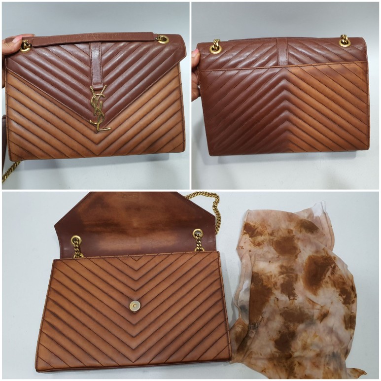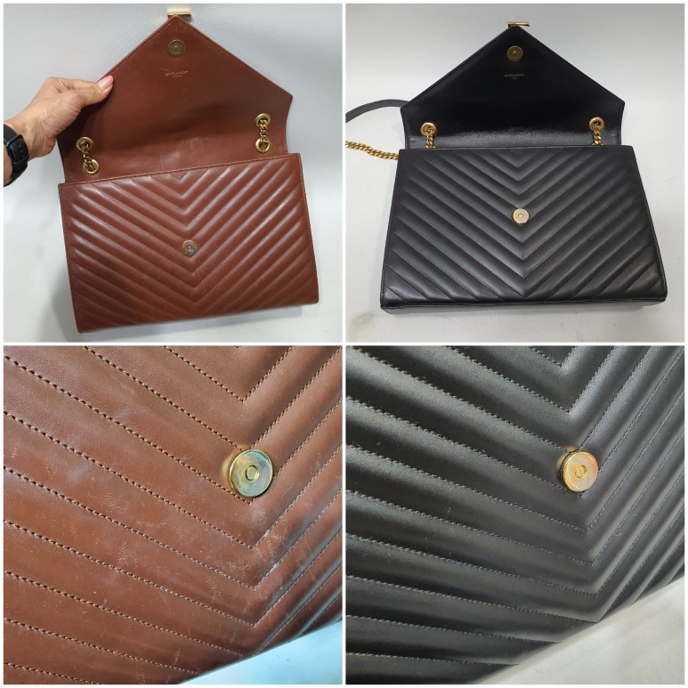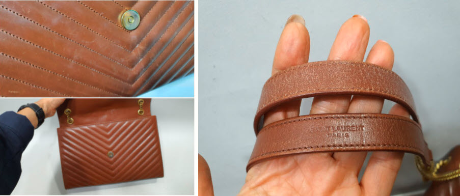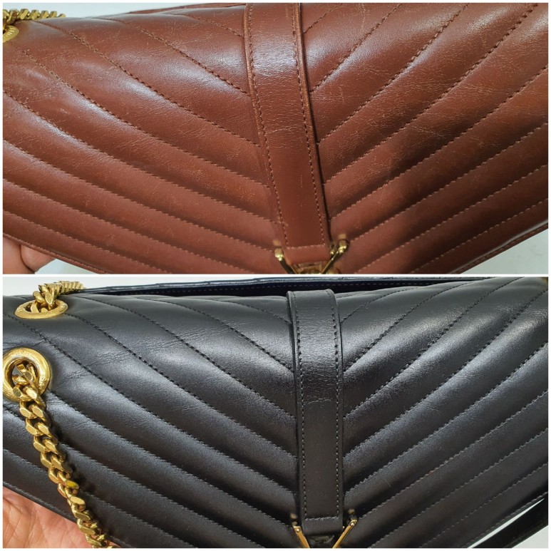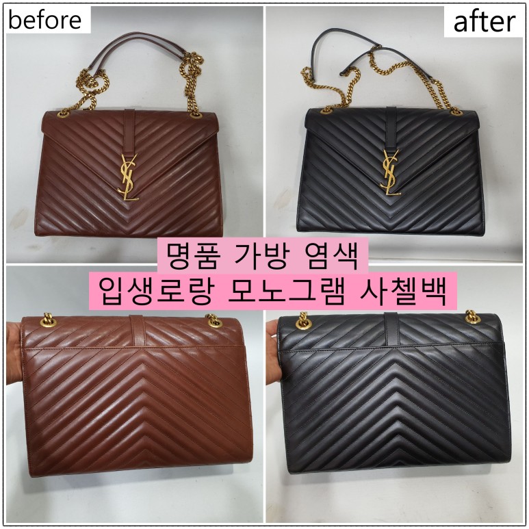오늘은 입생로랑 모노그램 사첼백 숄더백 염색 작업 입니다.