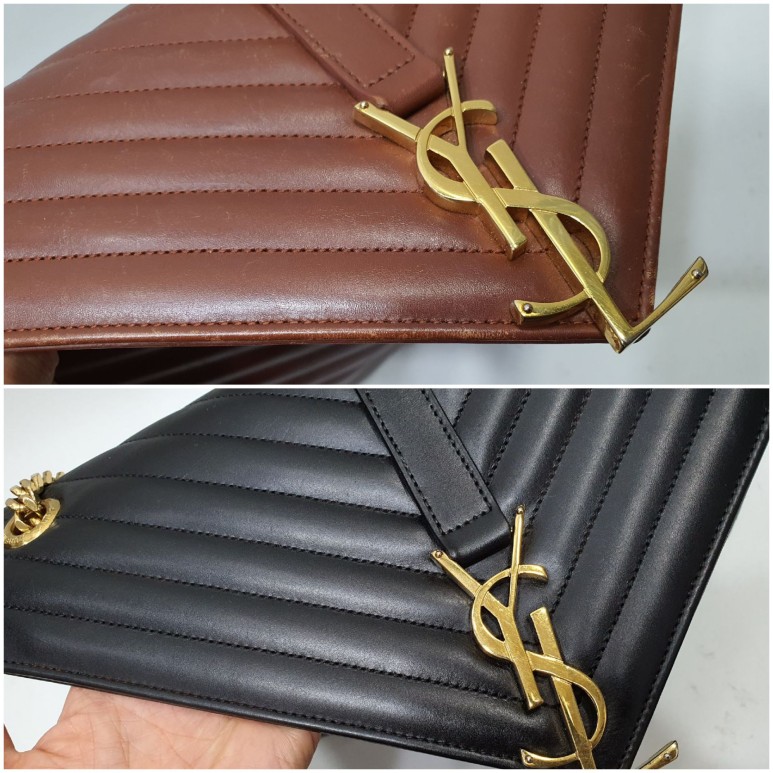 이렇게 해서 진한 브라운, 아니 실은 밝은 브라운 색상이었던 입생로랑 모노그램 사첼백이 세련되고 깔끔한 블랙으로 다시 태어났습니다.
