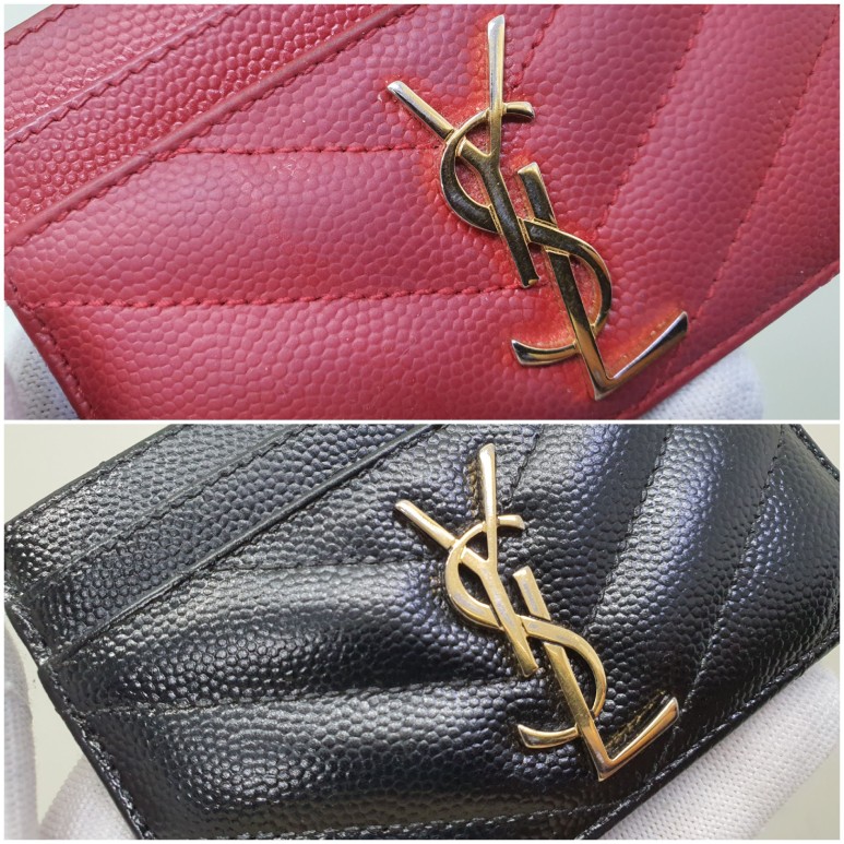 끈적임으로 표면이 윤기가 없을 때는 보이지 않던 입생로랑 지갑의 퀼팅된 입체감이 예쁘게 염색을 하고 나니 퀼팅의 멋스런 굴곡이 잘 드러나네요^^