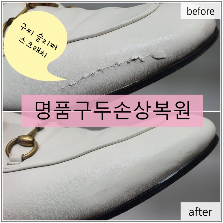 어느 날 현관에서 생긴 구찌 슬리퍼의 손상은 이렇게 말끔하게 마무리되어 다시 주인에게 돌아갑니다~^^