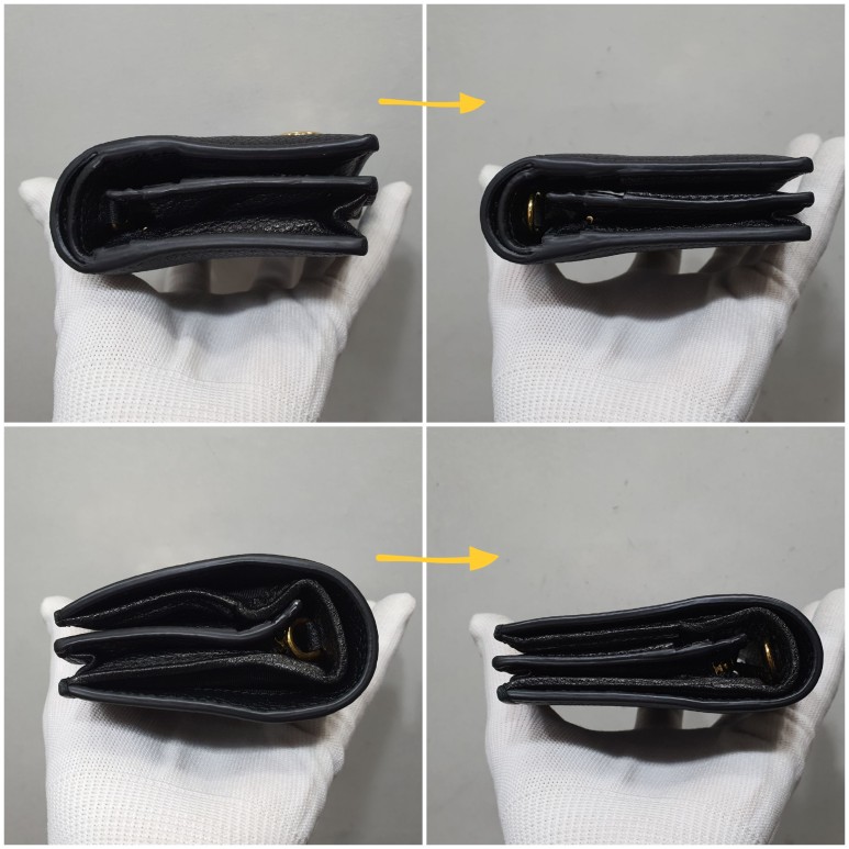 명품지갑은 그 브랜드 마다 사용하는 가죽이 달라서 변형되는 모양이나 형태도 각기 다릅니다.