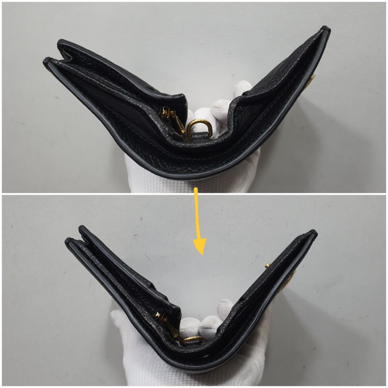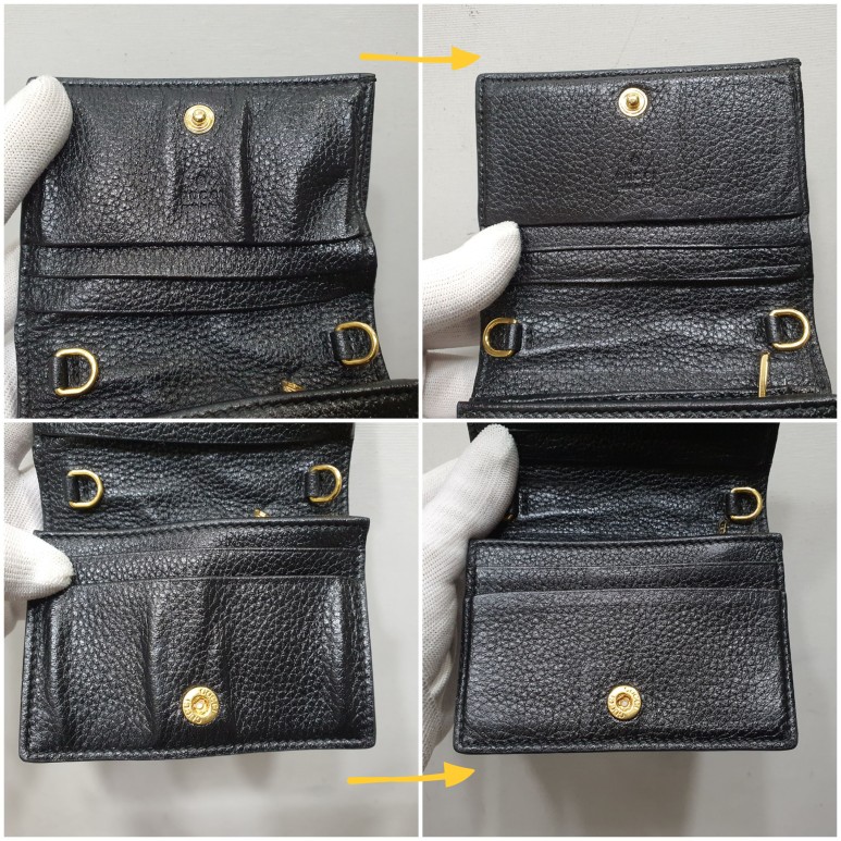 구찌 젖은 지갑 복원 중에서도 여성 지갑은 동전 수납 공간이 있기 때문에 복원시 좀 더 신경을 써야 합니다. 공간이 있다는 것은 그만큼 더 변형이 심하기 때문이지요.