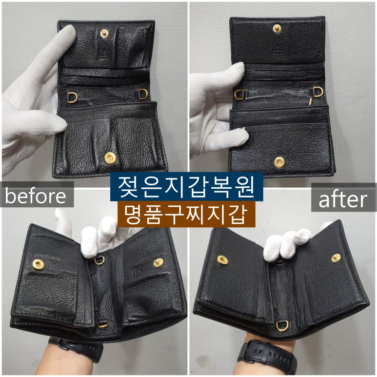 물에 젖어 심하게 변형되어 새로운 지갑을 사야하나 고민하셨었는데 구찌 물에 젖은 지갑복원 작업을 통해 이렇게 다시 주인에게 돌아가게 되었습니다^^